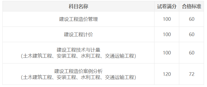一級造價師成績合格標準