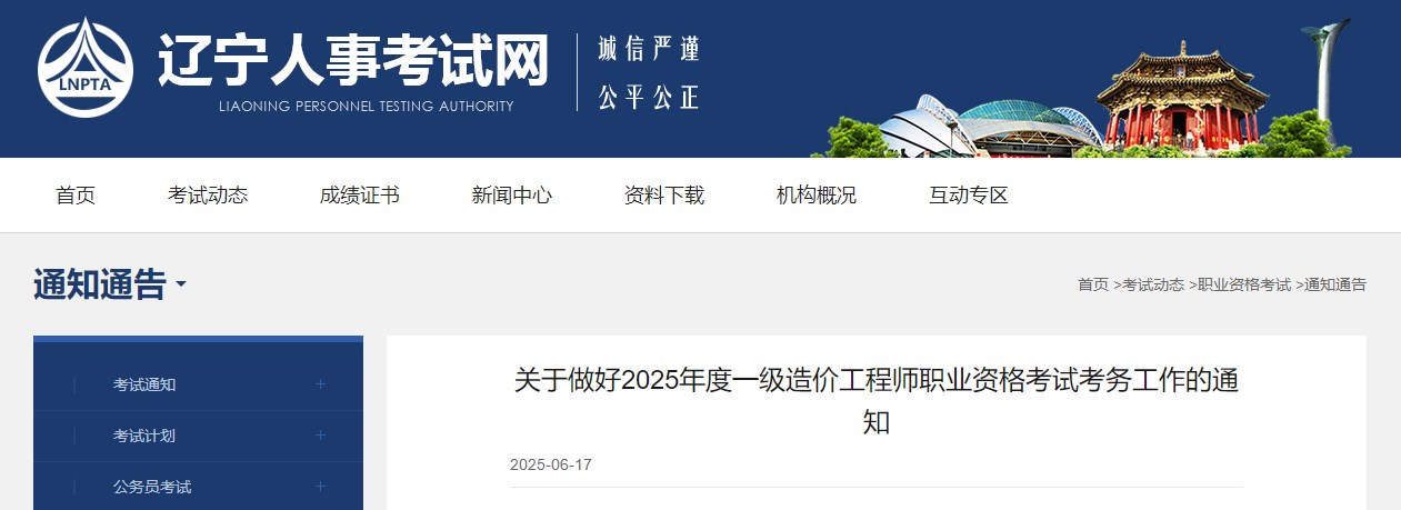遼寧省2025年度一級(jí)造價(jià)工程師職業(yè)資格考試報(bào)考通知