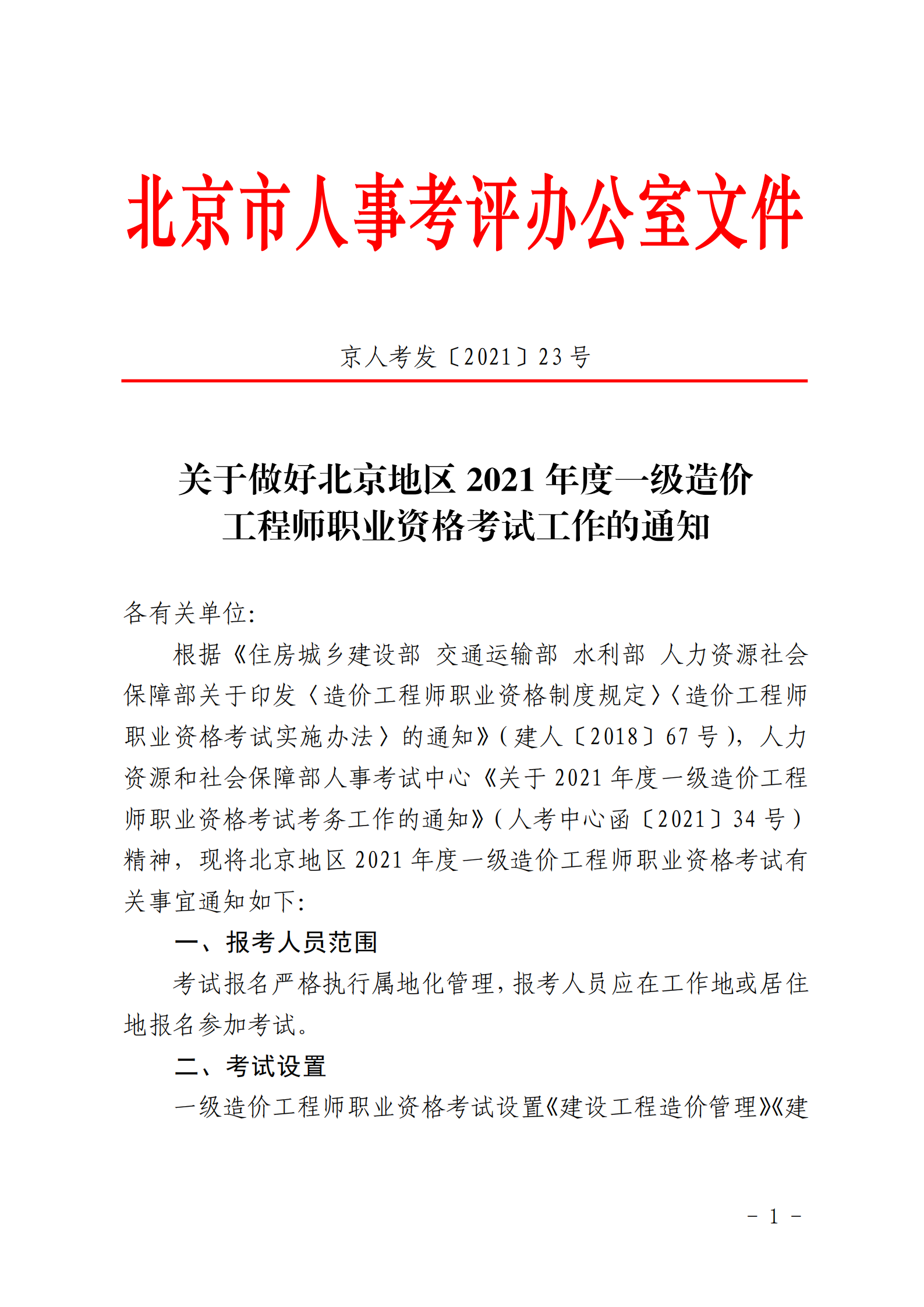 - · 關(guān)于做好北京地區(qū) 2021 年度一級(jí)造價(jià)工程師職業(yè)資格考試工作的通知