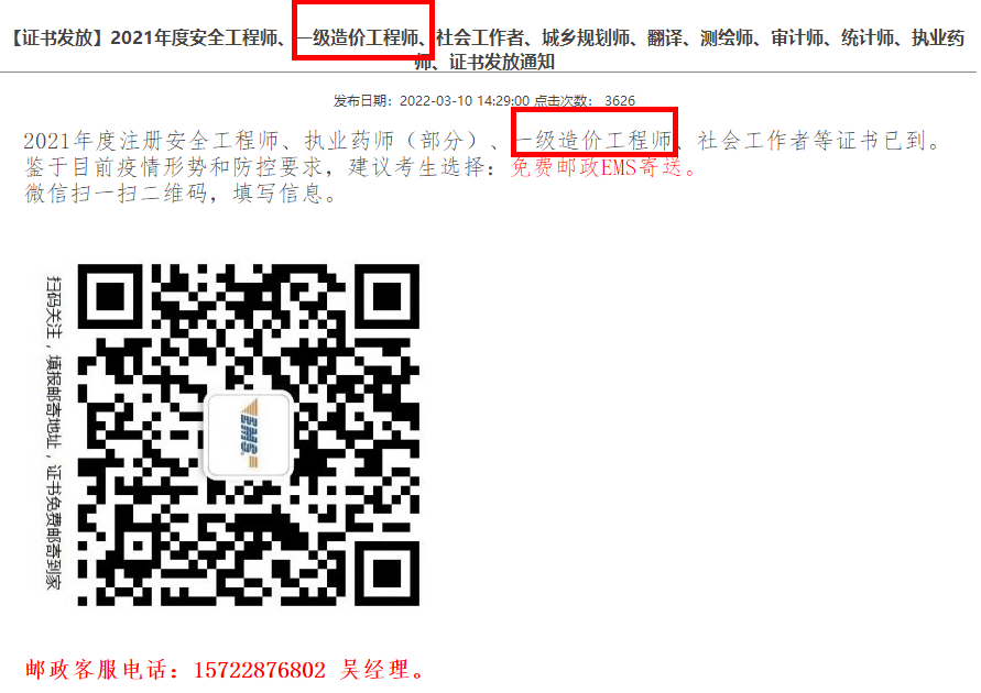 2021年度注冊(cè)安全工程師、執(zhí)業(yè)藥師(部分)、一級(jí)造價(jià)工程師、社會(huì)工作者等證書(shū)已到。