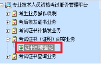 第三步:進(jìn)入系統(tǒng)后,在界面左側(cè)選擇“考試證書(證明)郵寄業(yè)務(wù)”下的“證書郵寄登記”。