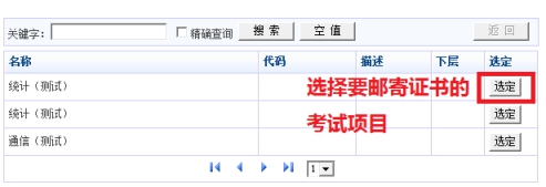 第六步:系統(tǒng)會(huì)自動(dòng)彈出考生通過并可領(lǐng)取證書的考試項(xiàng)目,現(xiàn)在選擇想要郵寄證書的考試。