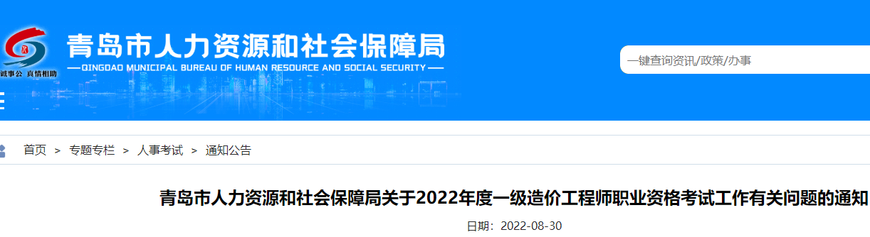 青島關(guān)于2022年一級造價工程師職業(yè)資格考試工作有關(guān)問題的通知