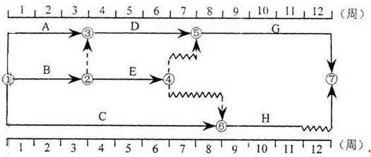 某工程雙代號(hào)時(shí)標(biāo)網(wǎng)絡(luò)計(jì)劃如下圖所示,其中工作E的自由時(shí)差為(   )。