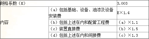在國外某地建設一座化工廠,已知設備到達工地的費用(E)為3000萬美元,該項目的朗格系數(shù)(K)及包含的內(nèi)容如下表所示。則該工廠的間接費用為()萬美元。