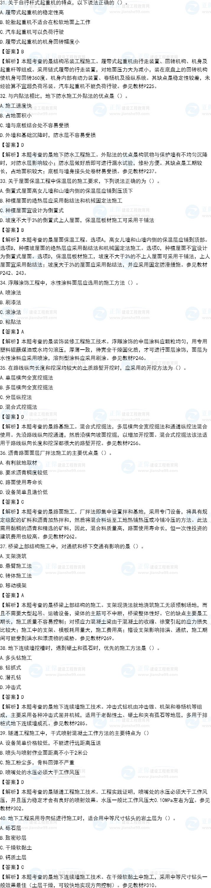 2021年一級(jí)造價(jià)師《土建計(jì)量》試題答案及解析31-40