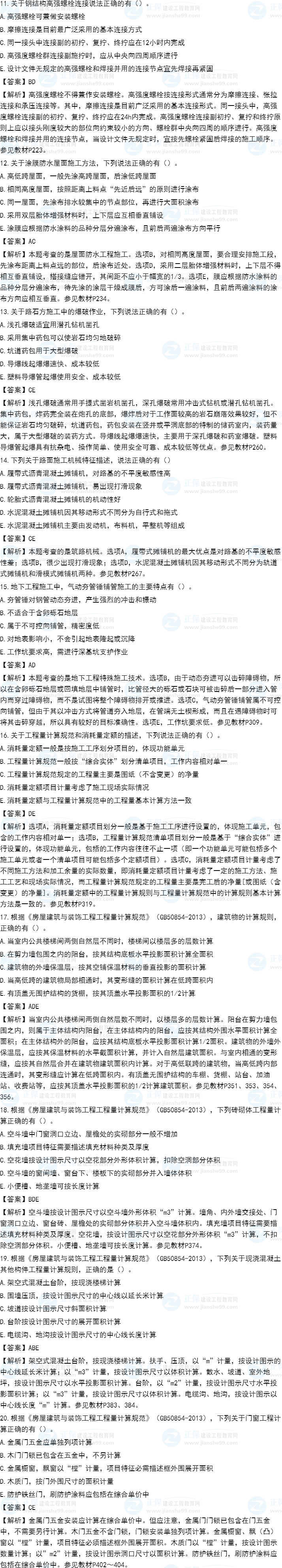 2021年一級造價師《土建計量》試題答案及解析71-80