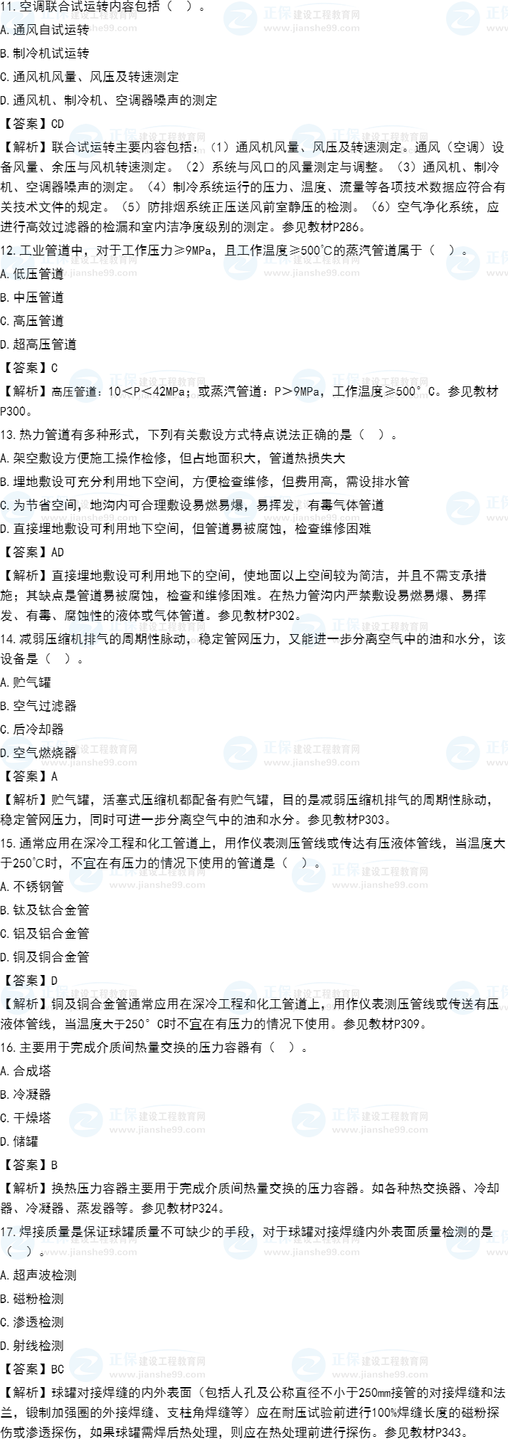 2021年一級(jí)造價(jià)師《安裝計(jì)量》試題答案及解析71-80