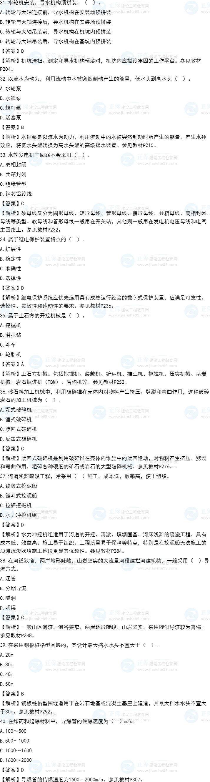 2021年一級造價師《水利計量》試題答案及解析31-40