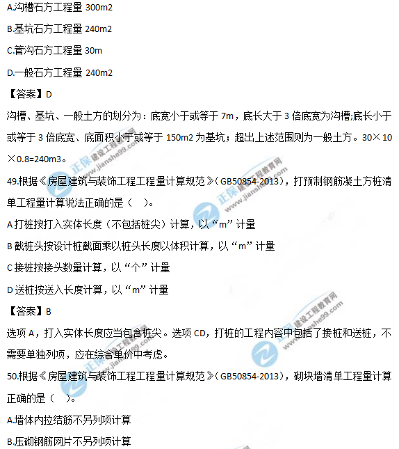 以上就是為大家分享的2019年一級(jí)造價(jià)師《技術(shù)與計(jì)量(土建)》試題及答案解析41-50,建設(shè)工程教育網(wǎng)將持續(xù)關(guān)注2020年一級(jí)造價(jià)師考試的相關(guān)信息。更多2020年一級(jí)造價(jià)師考試內(nèi)容,盡在建設(shè)工程教育網(wǎng)一級(jí)造價(jià)師欄目!