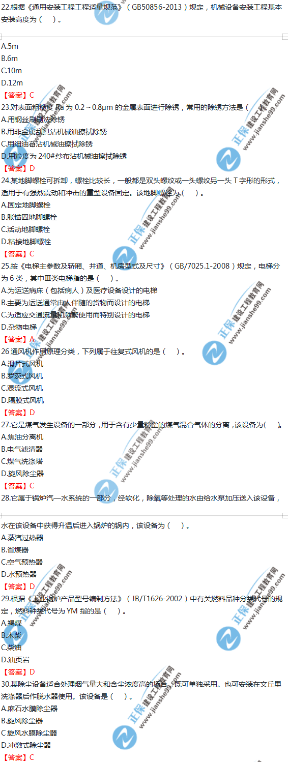 以上就是為大家分享的2019年一級(jí)造價(jià)師《技術(shù)與計(jì)量(安裝)》試題及答案解析21-30,建設(shè)工程教育網(wǎng)將持續(xù)關(guān)注2020年一級(jí)造價(jià)師考試的相關(guān)信息。更多2020年一級(jí)造價(jià)師考試內(nèi)容,盡在建設(shè)工程教育網(wǎng)一級(jí)造價(jià)師欄目!