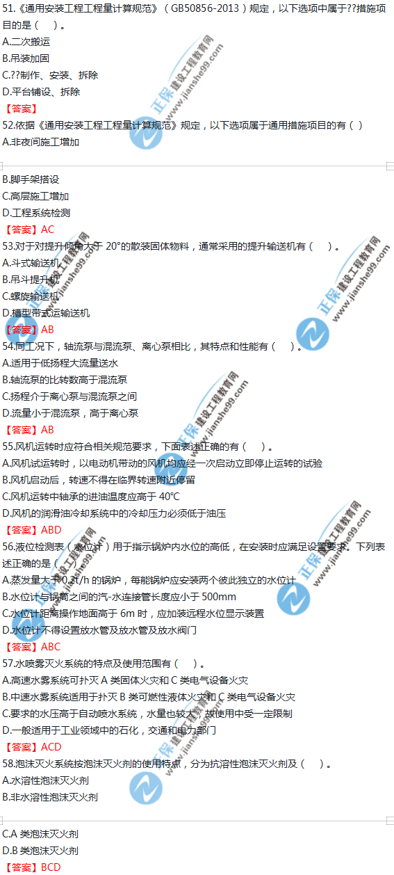 2019年一級造價師《技術(shù)與計量(安裝)》試題及答案解析51-60