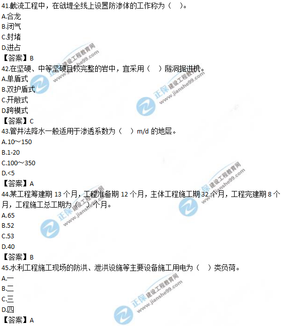 2019年一級造價師《技術(shù)與計量(水利)》試題及答案解析41-50