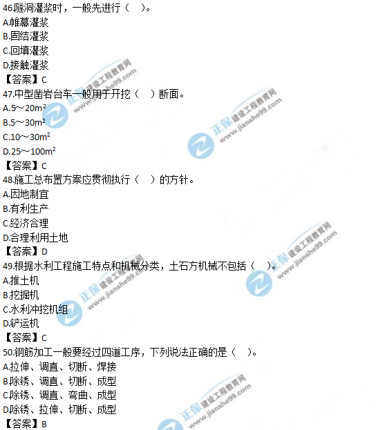以上就是為大家分享的2019年一級造價師《技術(shù)與計量(水利)》試題及答案解析41-50,建設工程教育網(wǎng)將持續(xù)關(guān)注2020年一級造價師考試的相關(guān)信息。更多2020年一級造價師考試內(nèi)容,盡在建設工程教育網(wǎng)一級造價師欄目!