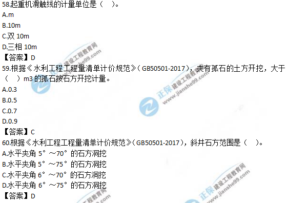 以上就是為大家分享的2019年一級造價師《技術(shù)與計量(水利)》試題及答案解析51-60,建設(shè)工程教育網(wǎng)將持續(xù)關(guān)注2020年一級造價師考試的相關(guān)信息。更多2020年一級造價師考試內(nèi)容,盡在建設(shè)工程教育網(wǎng)一級造價師欄目!