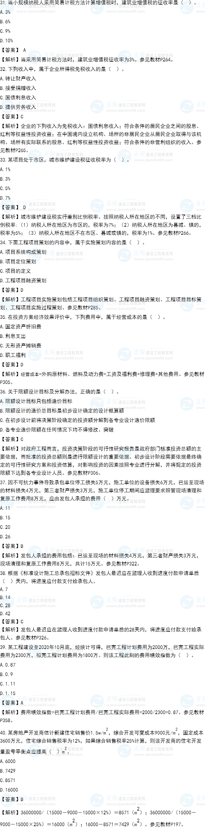 2021年一級造價師《建設(shè)工程造價管理》試題答案及解析31-40