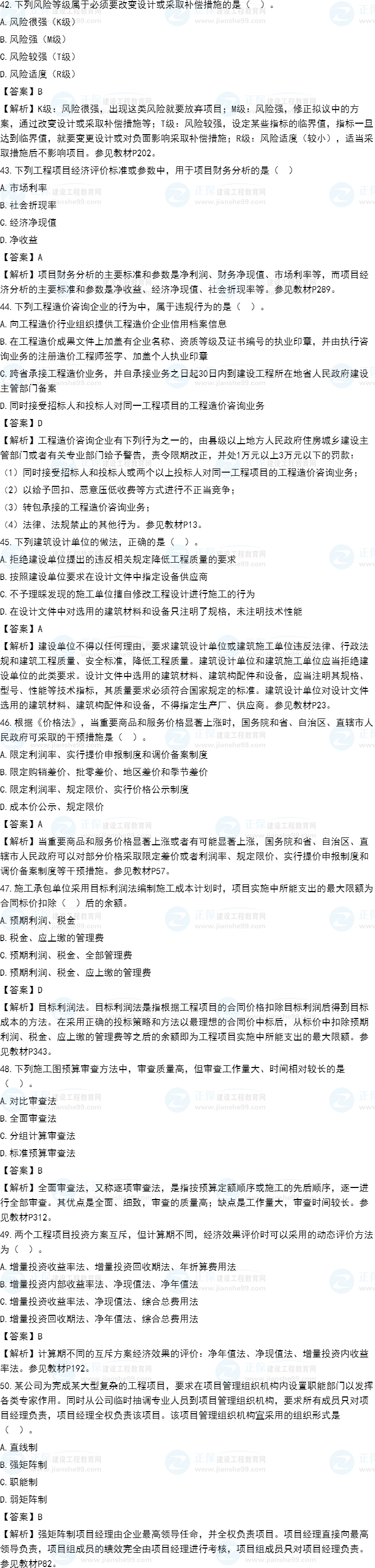 2021年一級造價師《建設工程造價管理》試題答案及解析41-50