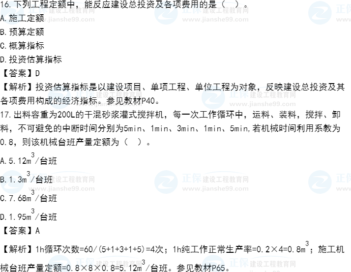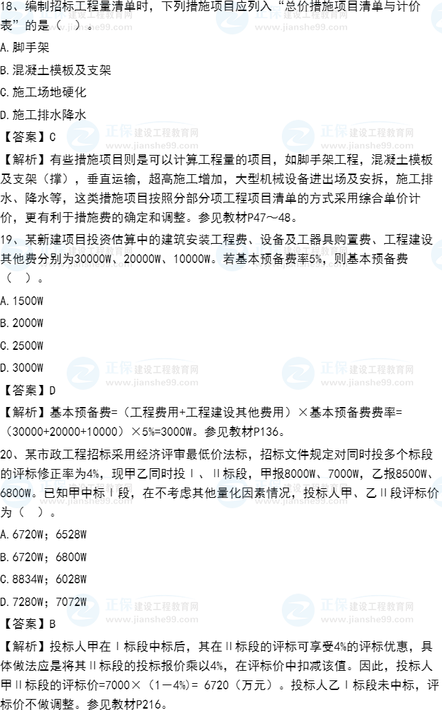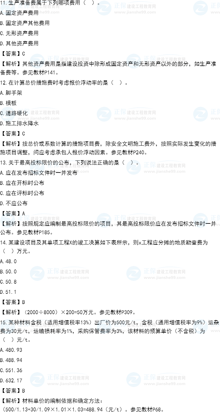 2021年一級造價師《建設工程計價》試題答案及解析11-20