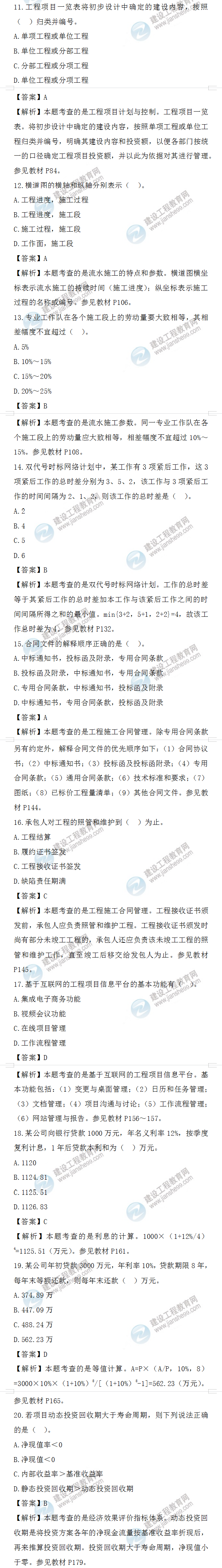 2022年一級(jí)造價(jià)師造價(jià)管理試題答案及解析11-20題