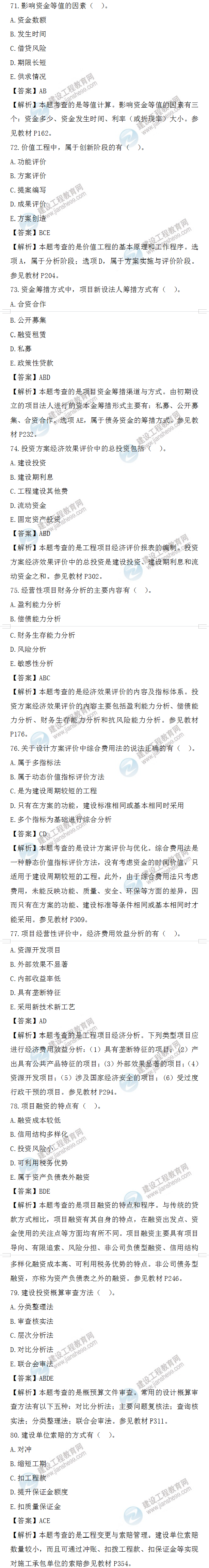 2022年一級(jí)造價(jià)師造價(jià)管理試題答案及解析71-80題