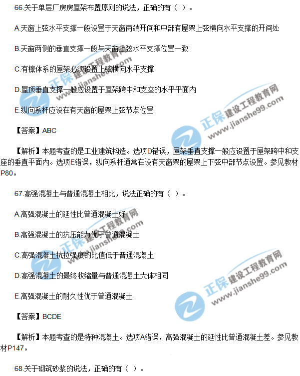 2017年造價工程師技術(shù)與計量(土建)試題及答案多選1-10