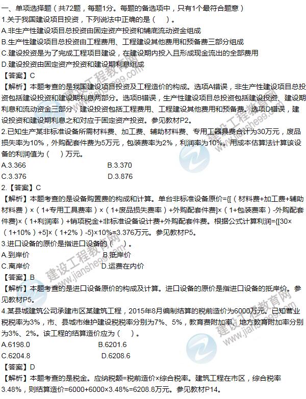2016年造價(jià)工程師《建設(shè)工程計(jì)價(jià)》答案及解析由老師整理而成,部分網(wǎng)站未經(jīng)許可擅自轉(zhuǎn)載、抄襲,造成內(nèi)容有所缺失或錯(cuò)誤,請(qǐng)大家以建設(shè)工程教育網(wǎng)發(fā)布為準(zhǔn)?。?a target="_blank" >點(diǎn)擊進(jìn)入試題討論區(qū) >> 就著試題咱們聊聊!)