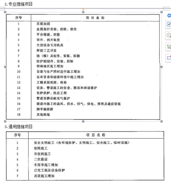 1.措施項(xiàng)目清單的編制應(yīng)根據(jù)擬建工程的實(shí)際情況列項(xiàng),除了考慮工程本身的因素外,還要考慮水文、氣象、環(huán)境、安全的實(shí)際情況。若出現(xiàn)規(guī)范未列的項(xiàng)目,可根據(jù)工程實(shí)際情況補(bǔ)充。補(bǔ)充的措施項(xiàng)目,需附有補(bǔ)充的項(xiàng)目的名稱、工作內(nèi)容及包含范圍等。