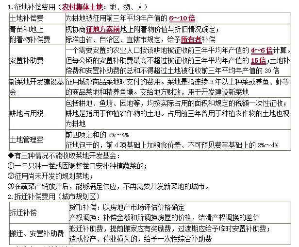 『答案解析』本題考查的是建設用地取得的費用。征地補償費包括:(1)土地補償費;(2)青苗補償費和地上附著物補償費;(3)安置補助費;(4)新菜地開發(fā)建設基金;(5)耕地占用稅;(6)土地管理費。參見教材P24。
