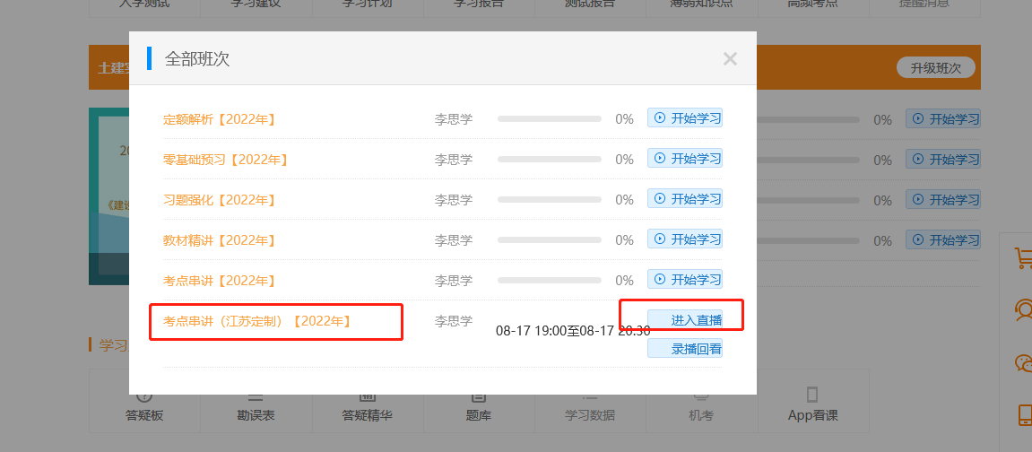 PC:進(jìn)入我的網(wǎng)校我的家——我的課程——找到土建實務(wù)科目——“考點串講(江蘇定制)”——準(zhǔn)時進(jìn)入直播