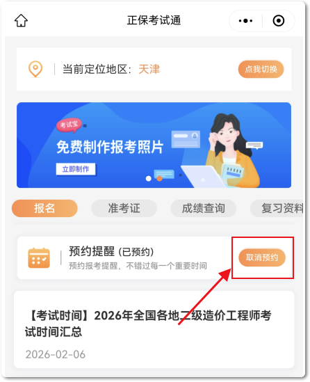 3.訂閱成功后,在考試報名及各重要時間節(jié)點(diǎn),會進(jìn)行微信通知,以免錯過重要節(jié)點(diǎn);如需取消可點(diǎn)擊“取消預(yù)約”按鈕。