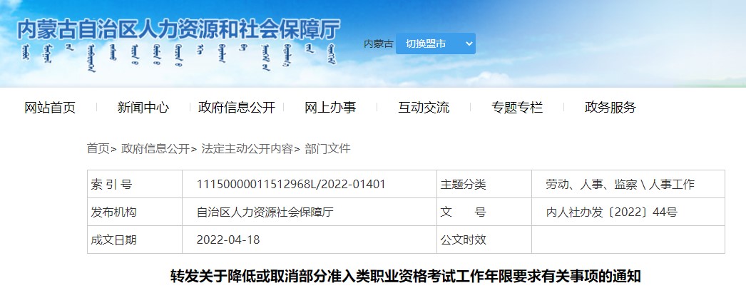 內(nèi)蒙古人社廳轉(zhuǎn)發(fā)關(guān)于降低二級(jí)造價(jià)工程師考試工作年限要求有關(guān)事項(xiàng)通知