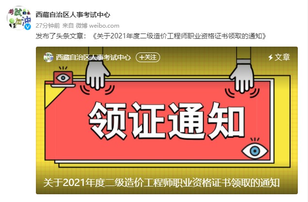 西藏自治區(qū)關(guān)于2021年度二級(jí)造價(jià)工程師職業(yè)資格證書領(lǐng)取的通知