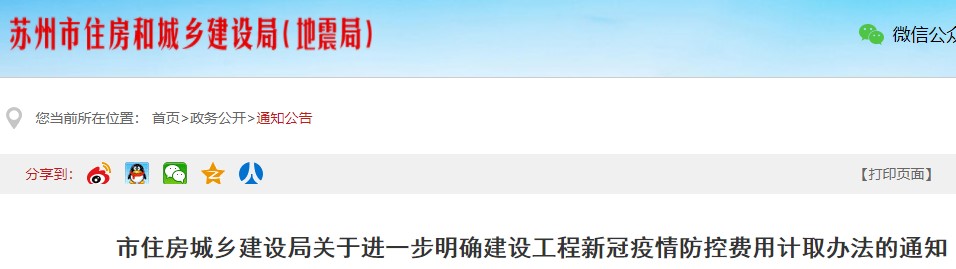 蘇州住建局關(guān)于進(jìn)一步明確建設(shè)工程新冠疫情防控費(fèi)用計取辦法的通知