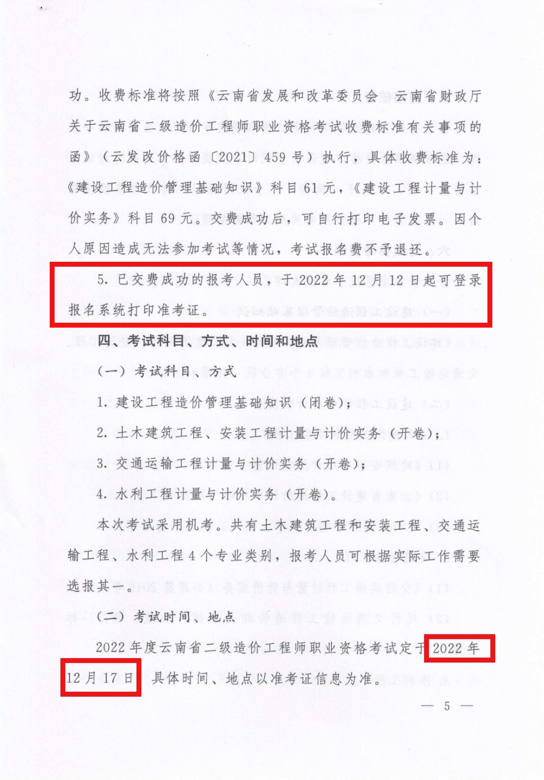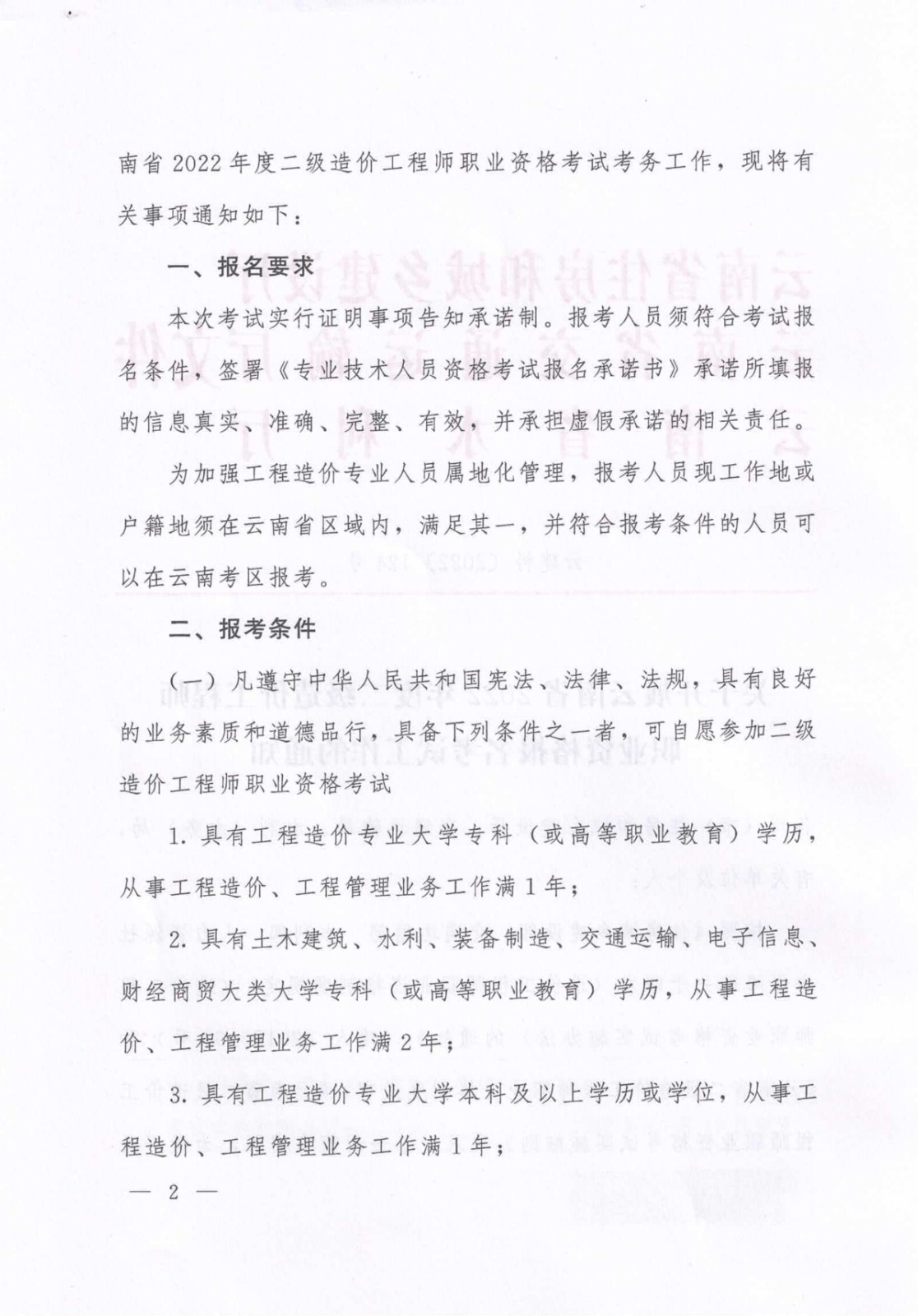 關(guān)于開展云南省2022年度二級造價工程師職業(yè)資格報名考試工作的通知