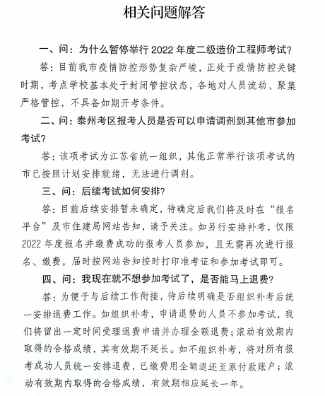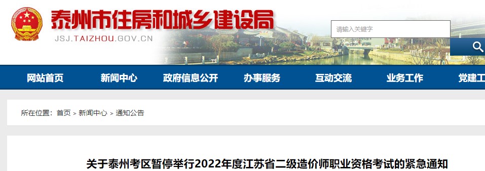 關(guān)于泰州考區(qū)暫停舉行2022年度二級造價師職業(yè)資格考試的緊急通知