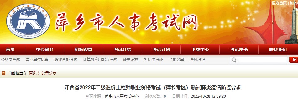 萍鄉(xiāng)市2022年二級(jí)造價(jià)工程師職業(yè)資格考試新冠肺炎疫情防控要求