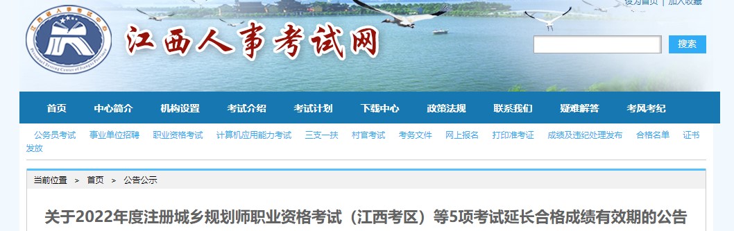關(guān)于2022年度注冊城鄉(xiāng)規(guī)劃師職業(yè)資格考試(江西考區(qū))等5項考試延長合格成績有效期的公告