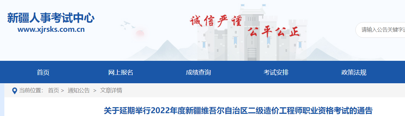 關(guān)于延期舉行2022年度新疆維吾爾自治區(qū)二級造價工程師職業(yè)資格考試的通告