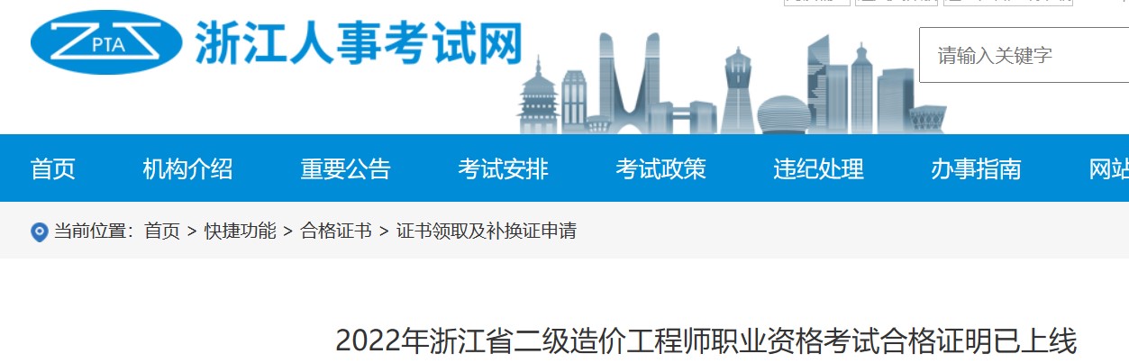 2022年浙江省二級造價工程師職業(yè)資格考試合格證明已上線,用戶可以進入“考試成績查詢及電子證書”欄目下載打印電子證書