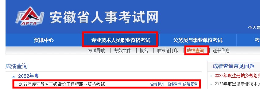 安徽省2022年度二級造價師考試成績查詢?nèi)肟谝呀?jīng)開通!