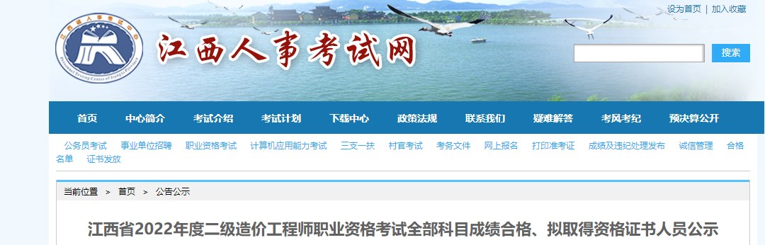 江西省2022年度二級造價工程師職業(yè)資格考試全部科目成績合格、擬取得資格證書人員公示