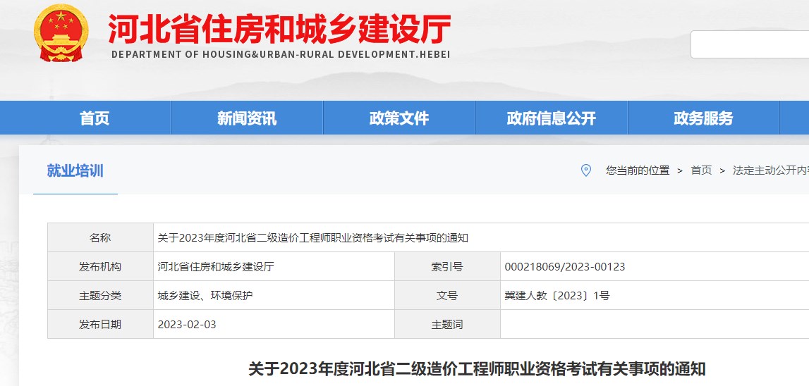 關(guān)于2023年河北省二級(jí)造價(jià)師職業(yè)資格考試有關(guān)事項(xiàng)的通知