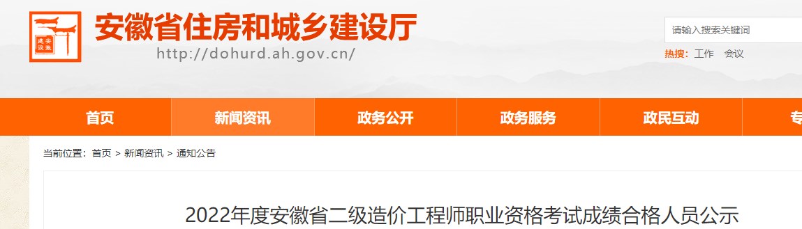 2022年度安徽省二級造價(jià)工程師職業(yè)資格考試成績合格人員公示