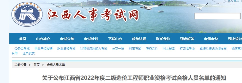 關于公布江西省2022年度二級造價工程師職業(yè)資格考試合格人員名單的通知