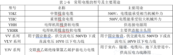 【解析】本題考查的是常用電氣材料。YHC主要用于500V,電纜能承受較大機械外力。見表1-6常用電纜的型號及主要用途。