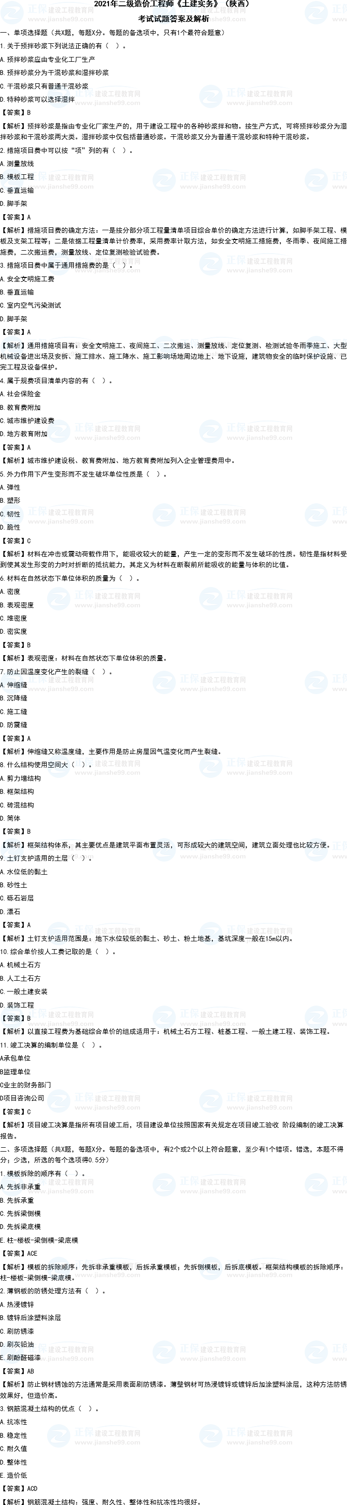 陜西2021年二級(jí)造價(jià)師考試《土建實(shí)務(wù)》考試試題及答案解析(考生回憶版)