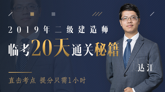 距離2019年二級(jí)建造師考試僅剩20天左右,隨著時(shí)間越來越近,發(fā)現(xiàn)很多重要的知識(shí)點(diǎn)未記住,心態(tài)也越來越焦躁。如何拯救你我的二級(jí)建造師考試!同學(xué)們,放輕松!建設(shè)工程教育網(wǎng)臨考20天直達(dá)秘籍直播,達(dá)江老師帶領(lǐng)考生們1小時(shí)直擊考點(diǎn),1小時(shí)梳理重難點(diǎn),1小時(shí)掌握做題技巧,你與直達(dá)只差這1小時(shí)!
