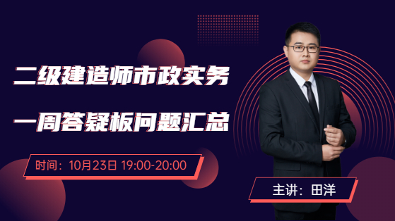 2020年二級(jí)建造師考試在即,您復(fù)習(xí)得怎么樣?對(duì)于即將到來的考試是否有信心呢?建設(shè)工程教育網(wǎng)特邀網(wǎng)校田洋老師為大家?guī)矶?jí)建造師市政實(shí)務(wù)一周答疑板匯總免費(fèi)直播,為大家精心整理了答疑板上學(xué)員們提問的高頻問題、重點(diǎn)問題,為大家進(jìn)行考前點(diǎn)撥,千萬別錯(cuò)過!