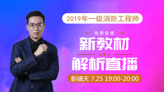 | 7月25日19:00-20:00 | 2019年一級消防工程師教材解讀直播(下) | 靳嘯天 | 點擊進入 |