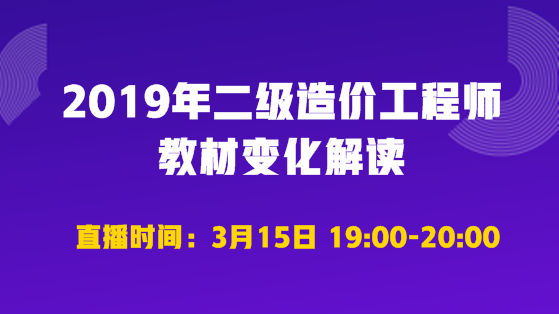 為了更好有針對性的幫助備考2019年二級造價師考試的學員們復習,斬獲高分!建設(shè)工程教育網(wǎng)的帥哥老師將在3月15日晚上19:00-20:00免費直播一場關(guān)于2019年二級造價工程師教材變化的解讀課程呦!